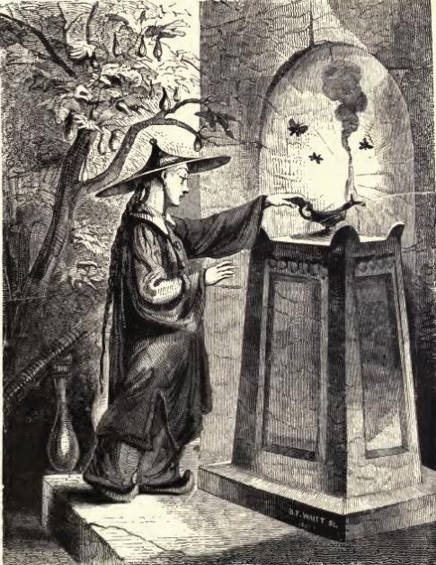 Van die Maghrebijnse tovenaar krijgt Aladdin een toverring. Dankzij die ring kan hij een magische grot betreden en een wonderlamp meenemen. Wanneer zijn moeder de lamp oppoetst, verschijnt er een djinn. Met hulp van de djinn en de geest in de ring wordt Aladdin een steenrijke man, die uiteindelijk trouwt met een prinses. Daarmee is het verhaal nog niet ten einde, want later krijgt Aladdin het aan de stok met de broer van de tovenaar.