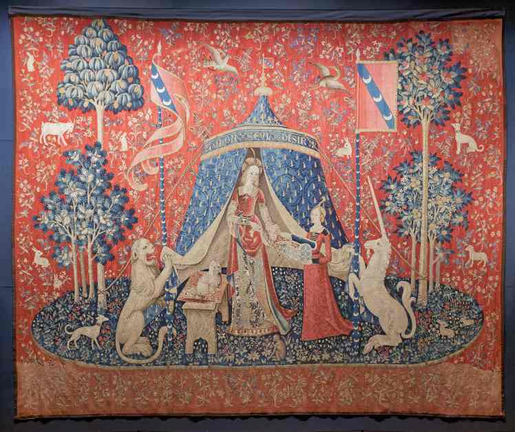 De reeks van zes wandtapijten wordt algemeen beschouwd als een hoogtepunt van de laatmiddeleeuwse tapijtkunst. Ze is gekend onder de naam ‘La Dame à la Licorne’ (De dame en de eenhoorn) en is allicht rond 1500 gemaakt in België in opdracht van de familie Le Viste uit Lyon. Verder is er over de ontstaansgeschiedenis weinig geweten. Welke Le Viste gaf de opdracht? Wat was de reden van die opdracht? Wie maakte de schilderijen en de patronen? Wie maakte de wandtapijten? Wat is de symboliek achter de wandtapijten? Wat met de dame op het tapijt ‘A mon seul désir’, neemt ze haar juweel af of doet ze uit juist aan?