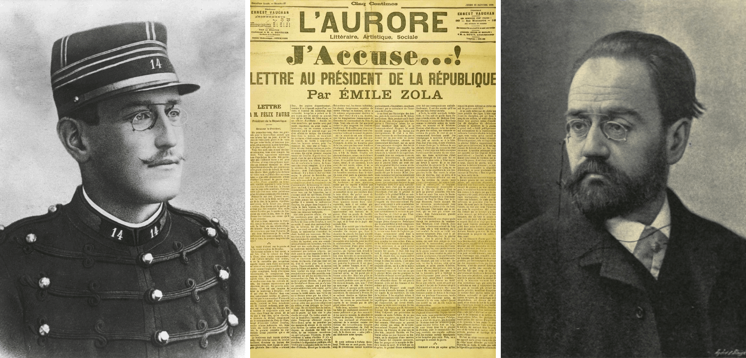 Op 13 januari 1898 verscheen in de Franse krant L’Aurore een open brief van schrijver Émile Zola (1840 – 1902). In deze brief, getiteld ‘J’accuse, beschuldigde Zola de overheid van een dofpotoperatie in verband met de zaak rond Alfred Dreyfus.