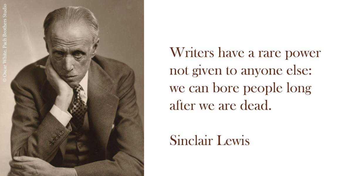 In 1930 won Sinclair Lewis (1885 – 1951) als eerste Amerikaan de Nobelprijs voor Literatuur. De Nobelprijscommissie prees zijn kunstige, doortastende en beeldende beschrijvingen en zijn begaafdheid om met humor en scherpzinnigheid nieuwe karakters te creëren.